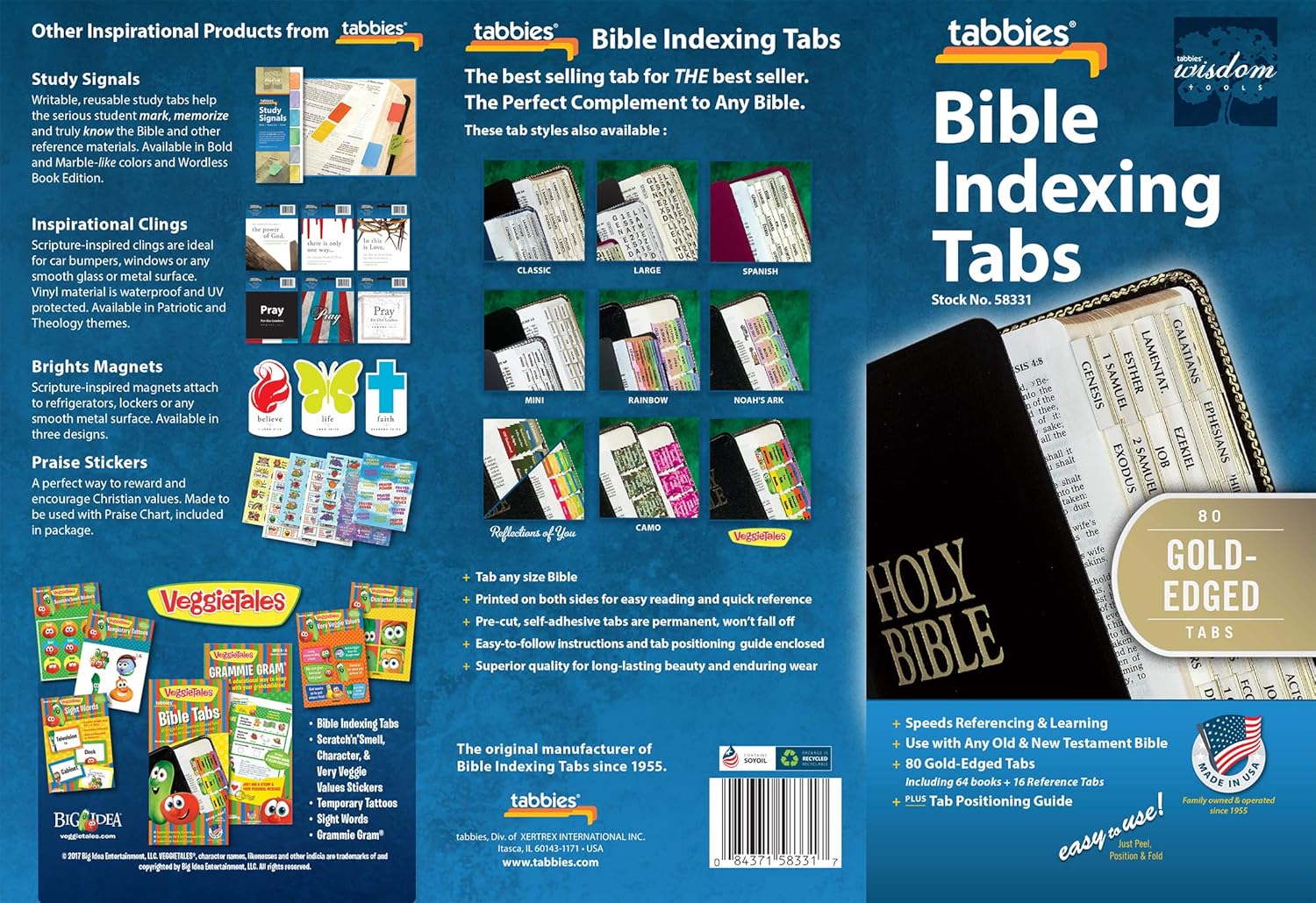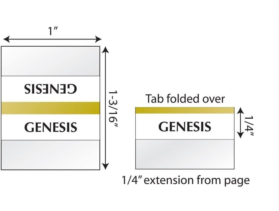 Tabbies Gold-Edge Bible Index Tabs offer an elegant, practical solution for quick and easy Bible navigation. These durable, self-adhesive tabs provide a classic look while helping users of all ages rapidly find a specific Book of the Bible.